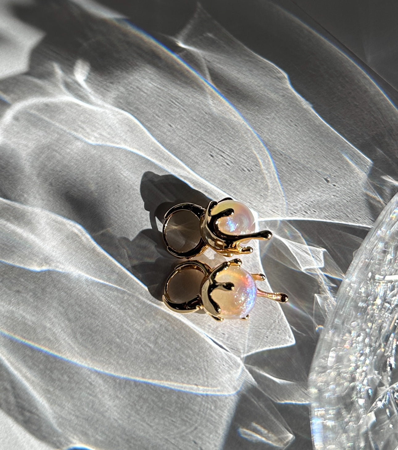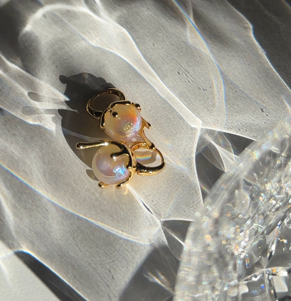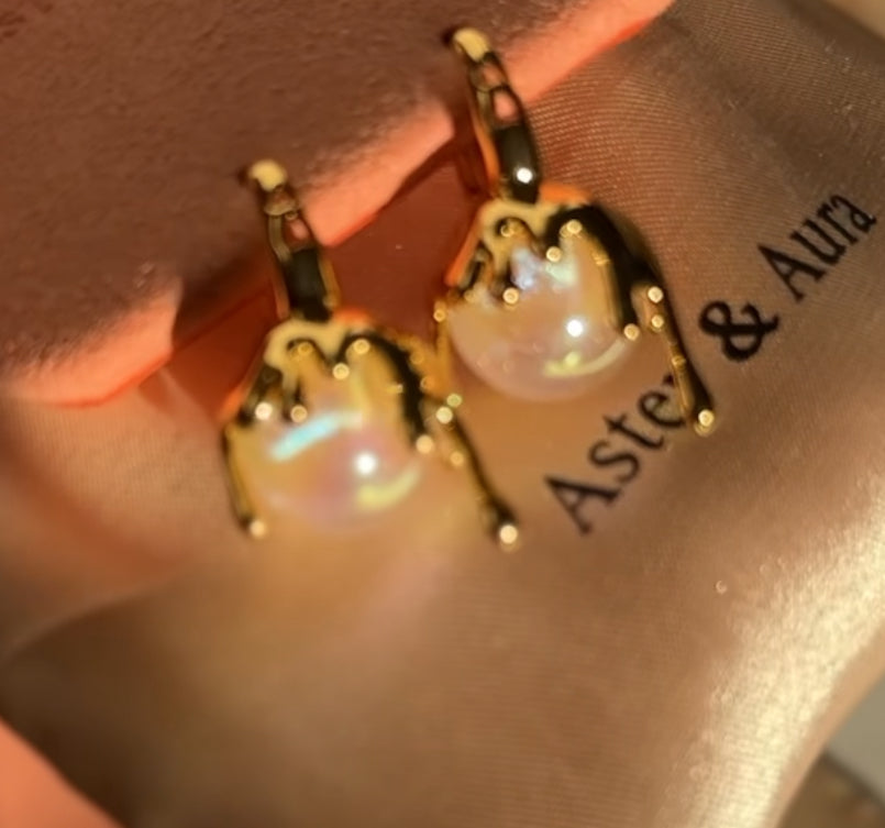 Kaia Gold Drip Pearl Iridescent Huggies Earrings