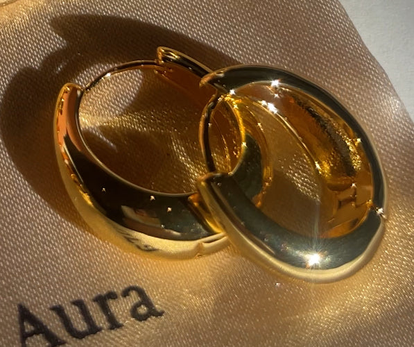 Crafted with meticulous attention to detail, Aster & Aura's Lumina Gold Hoop Huggies Earrings feature a delicate hoop design, mirroring the celestial orbits that dance through the cosmos. Each hoop is carefully crafted from brass and plated with bright 18k gold, evoking the mesmerising energy of starlight, while reflecting a vibrant golden hue reminiscent of the sun's warm embrace. Feel the invigorating energy of these earrings as they gently hug your earlobes, embracing your style with a celestial touch. The Lumina Gold Hoop Huggies Earrings are designed to empower your inner glow and add a touch of bright elegance to any ensemble. Whether you're attending a glamorous event or simply illuminating your everyday look, these earrings are the perfect accessory to elevate your style.